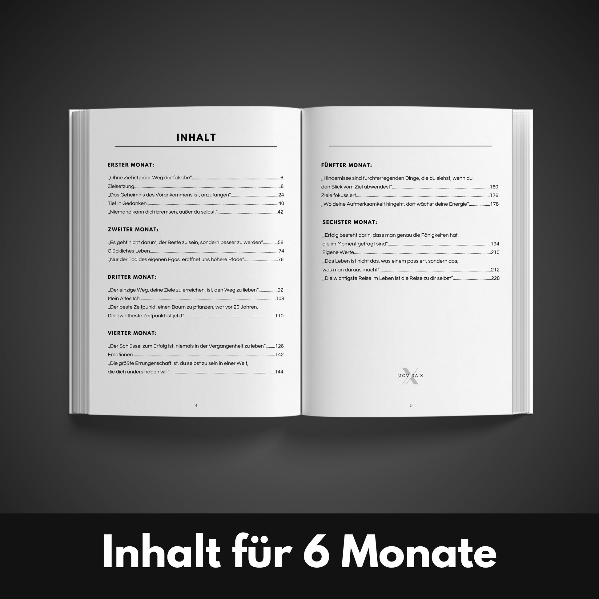 Das Clear Vision Journal von Movira X™ ist nicht nur darauf ausgelegt, seinen Tag zu planen und zu reflektieren, sondern bietet richtigen Mehrwert. Alle 14 Seiten bekommt man eine Lebenslektion an die Hand gelegt, die dabei helfen soll, sein Leben in die richtige Richtung zu lenken. Mit praxisbasierten Tipps kannst du diese Lektionen sofort in dein Leben einbinden und von ihnen profitieren.